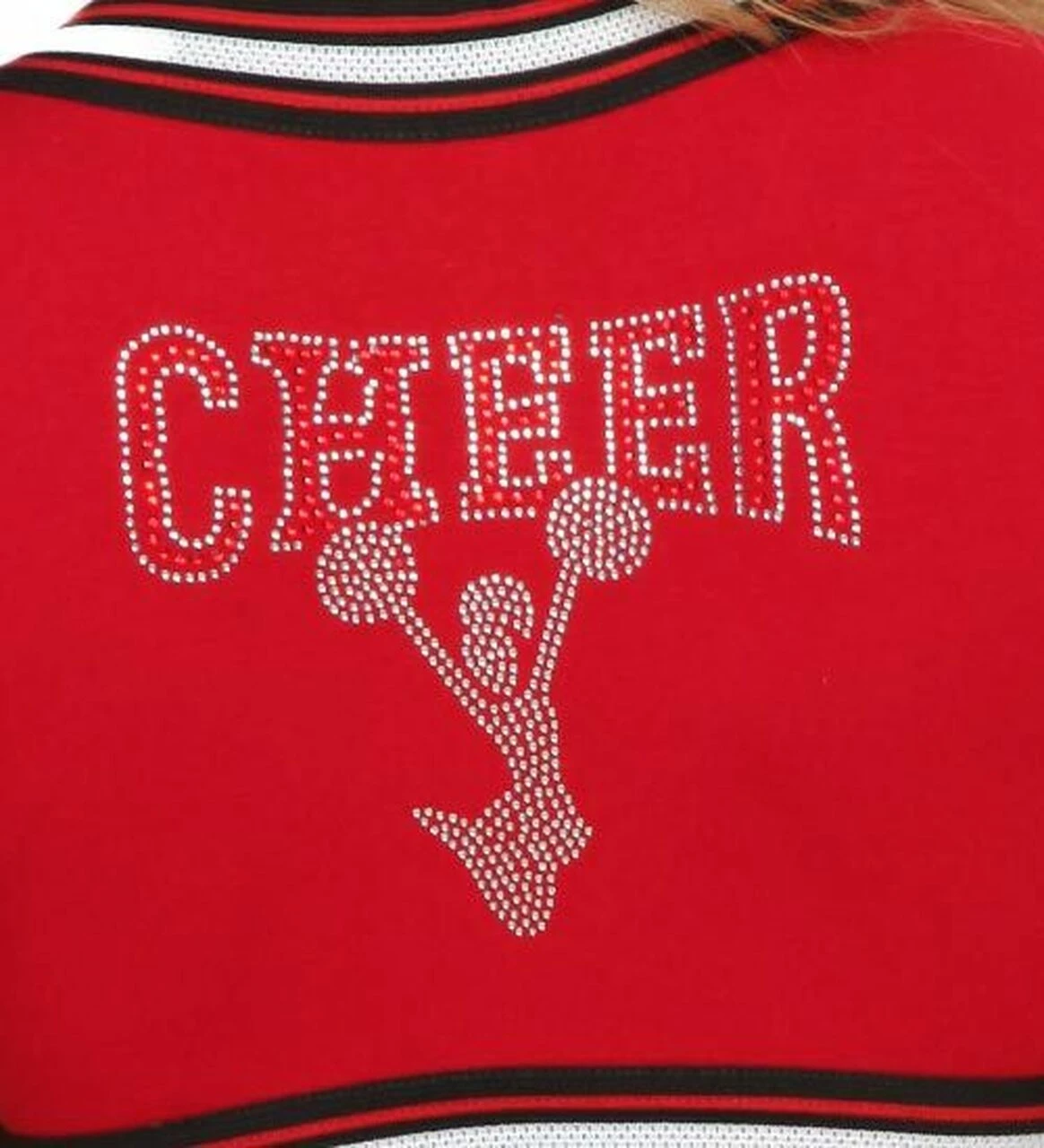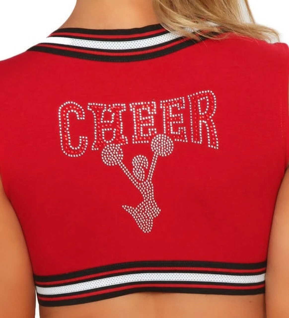 *V Neck Crop Top with Rhinestone “CHEER” on Back and Sporty Wide Stretch Trim