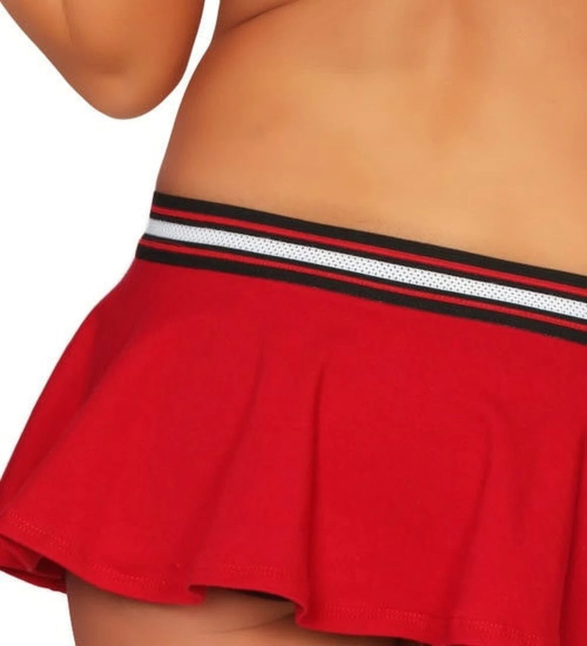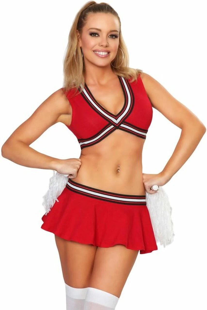 Be the red hot focus of your next party by cheering revelers along through the evening at the party while wearing this sexy four piece Red Hot Cheerleading Costume. You can also be the “ra ra” for your partner and give them that little extra special attention to get them where they need to be in order to rigorously play in those more “private” and intimate championship games.