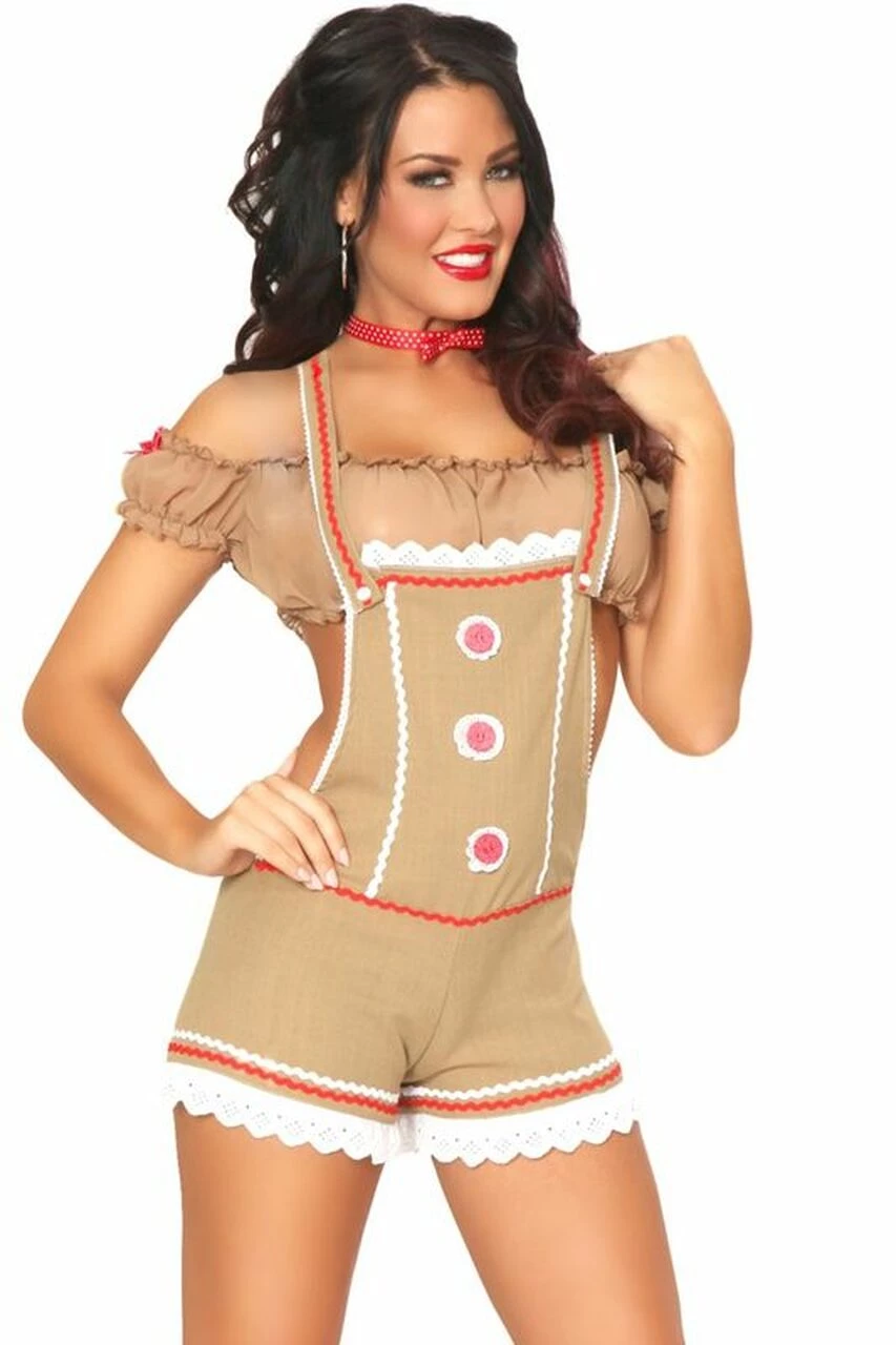 Look fabulous by slipping into an ultra-flirty fancy costume; a sexy gingy costume from 3 wishes! This three piece Ginger Bread costume includes a polka dot bow tie, halter tie neck romper featuring front cookie button detail, and peek-a-boo hook-and-loop window bottom. It also comes with an off the shoulder crop top. The super cute costume is irresistibly cute and guaranteed to bring out the sexy siren in you. Spice up your special evening in the bedroom, and make your Halloween, or fancy dress night out more entertaining by wearing this costume. We bring you the best collection of sexy gingy costumes made from premium quality material, at affordable prices. Our sexy gingy costumes are comfy, fun to wear, and will certainly make you feel confident. Shop the hottest styles of sexy costumes at 3wishes today!