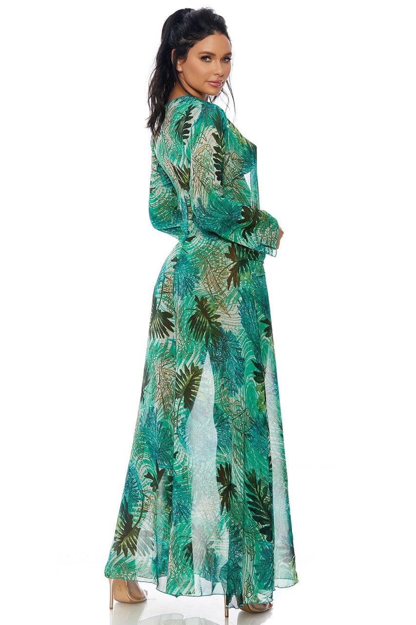 This Love Don’t Cost a Thing Superstar costume includes a sheer mesh dress with long sleeves, a plunging neckline and a high front slit.
