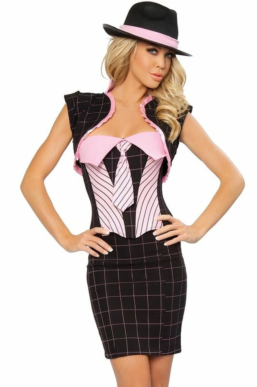 This lace-up corset top is going to help you look your absolute best and the pencil skirt is definitely going to emphasize it even more. The cropped jacket and hat complete your style and definitely turn you into the sexiest gangster that your police force (or your organization) has ever seen. Your Halloween party is going to be a blast from the past and that means you shouldn’t have any trouble finding yourself a speakeasy and some friends to go with you.