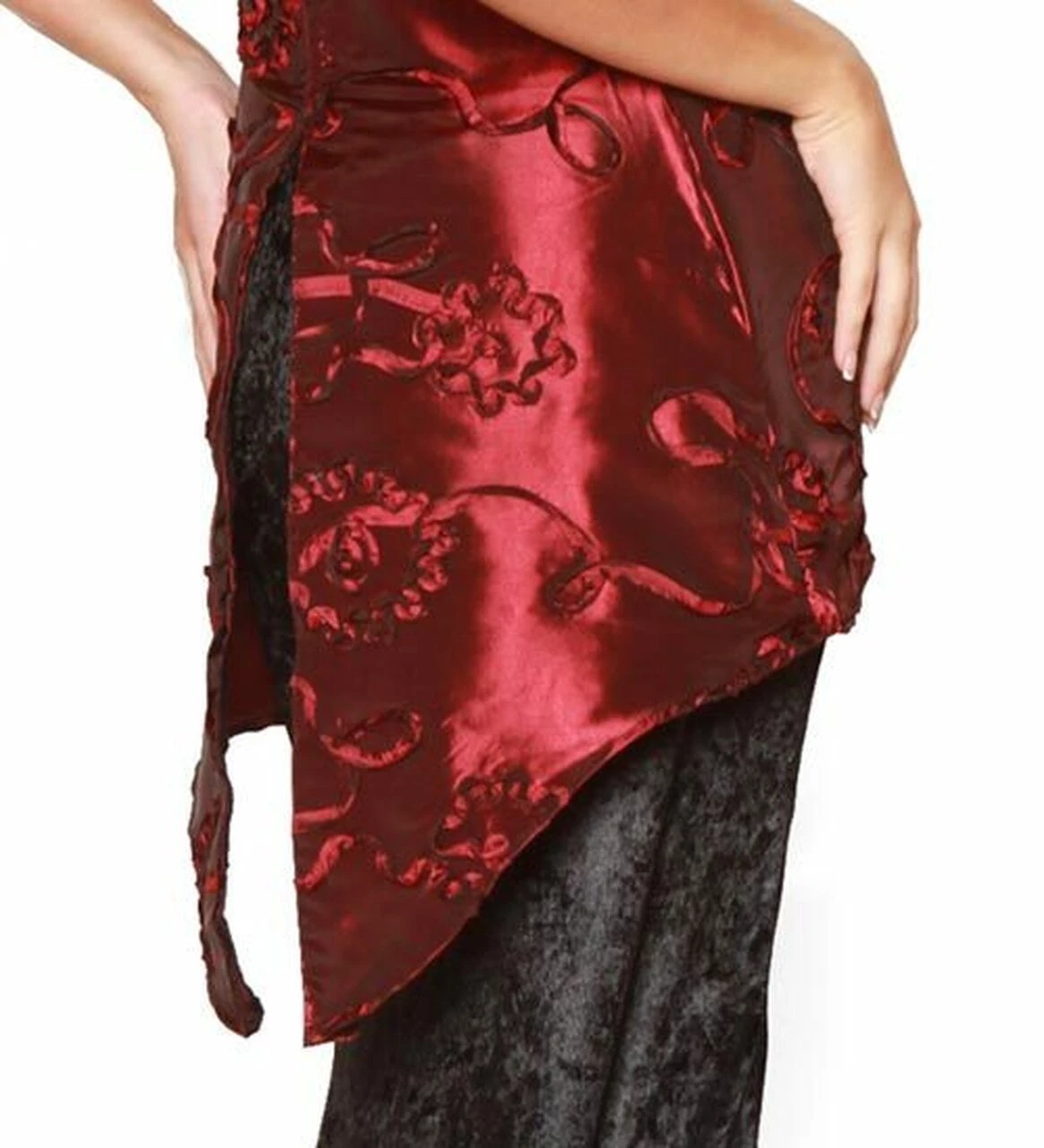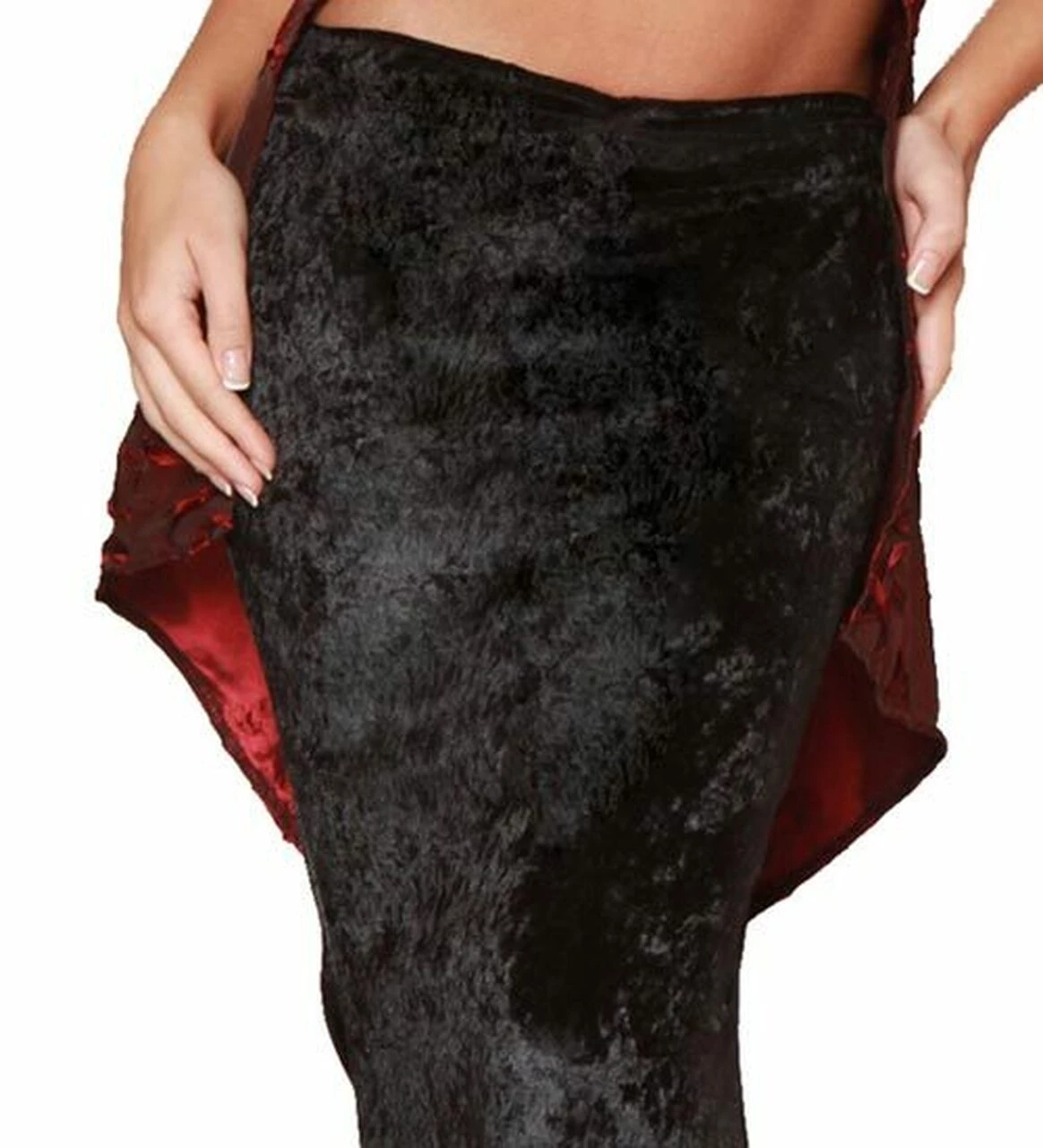 Two Piece Female Vampire Costume includes Zipper Front Jacket with Collar and Tail, and Full Length Mermaid Skirt. Made in USA
